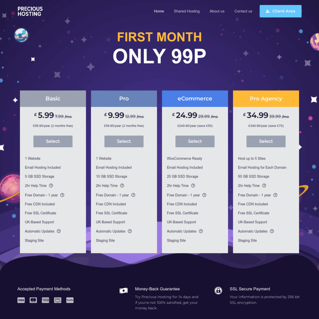 Precious Hosting is my own hosting company, offering reliable, affordable web hosting plans for individuals, businesses, and agencies. I launched it in 2010, and over the years I’ve grown it into a professional service with a dedicated website, automated billing, and a customer portal.